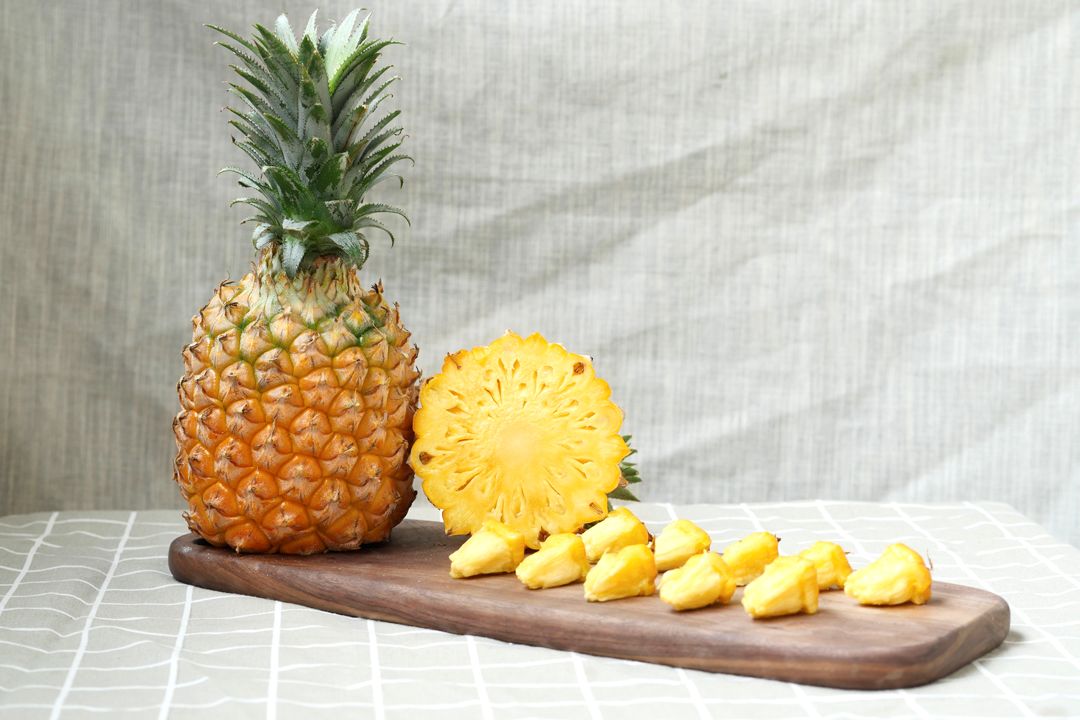但蛋白酶活性和草酸钙的含量会随着菠萝成熟度的增加而减少。感谢科学培育和现代物流的发展,才能让我们吃到甜度高、完全成熟的手撕菠萝,无需盐水泡,直接就能吃。