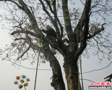 百年老香椿树长致五楼高 因抢夺住户光照被修剪