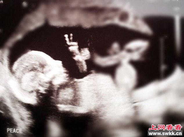 来自马萨诸塞州米尔顿的戈弗雷(Godfrey)夫妇是一对幸福的准父母,他们在对胎儿进行B超检查时惊奇地发现胎儿摆出了代表和平的V字手势。负责检查的医师还幽默地在图片 “性别”一栏里填上了“和平”。
