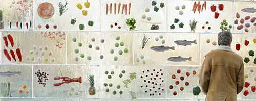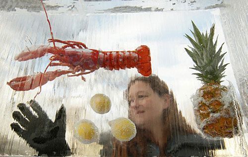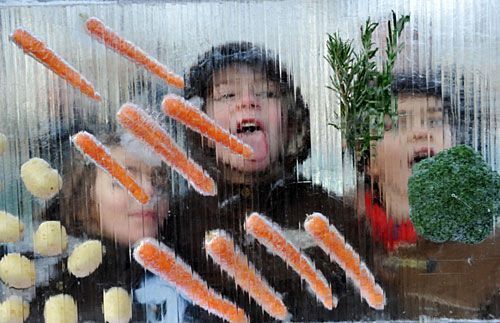 英国在音乐厅外竖起奇特“冷冻食品墙”