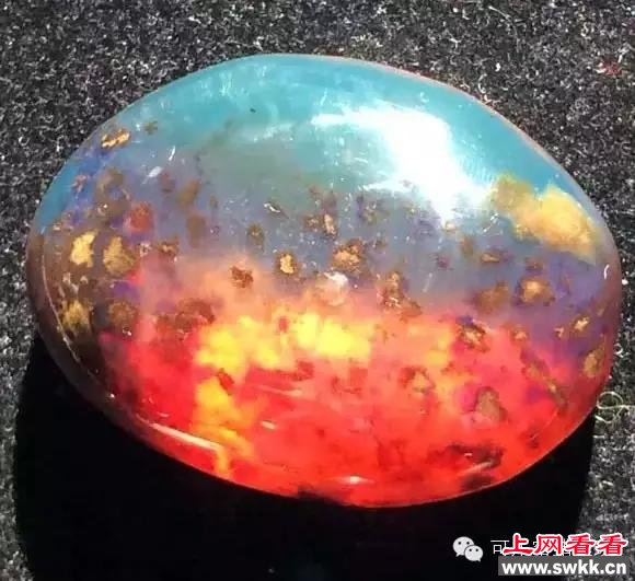 上图也是个“水草”珀,但看表皮,估计就是矿物渗入形成的,其中的“水草”不如上图有丛簇的状态,而是有点漂浮。图没拍清里面。