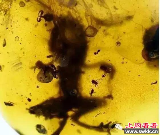 两栖动物还有一个大家特别喜欢的,那就是螃蟹。琥珀中有没有螃蟹呢?此前世界上发现过螃蟹琥珀,但螃蟹只有很小的残片。估计那个是波罗的海的。在缅甸琥珀近年大规模开采后,原来的动物琥珀稀少局面极大改观,现在大家经常看到缅甸琥珀中出现蜥蜴壁虎什么的,甚至还有青蛙,比大英博物馆藏的琥珀强多了。说到这里,要补充下,青蛙也是两栖动物,并且也是非常罕见的。