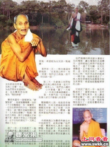 妇俩满以为龙婆爽会在水中念经持咒,结果却吓了他们一跳。龙婆爽叫人拿了个大胶盆,垫在脚下,把夫妇俩盛来的水往脚上浇,然后吩咐夫妻俩把那洗脚水带回家让女儿喝下。夫妇俩不知道该怎么办了,却也不好意思拒绝,最后妻子说死马当活马医吧!他们慢慢将洗脚水灌进女儿嘴里,这时候女儿已病得不能起身喝水了。过了半个小时,女儿肚痛难忍,且大呕特吐。家人夫妇俩见了觉得肯定没救了,她说吐之物,有许多血状的粘液。一阵之后,她昏迷了过去,夫妇俩只有悲痛的帮为她整理衣服及床单等,希望她能整整齐齐的上路。可是第二天一早,她突然醒了过来,还要求喝水,直说肚子饿要吃东西。不久后就慢慢复原了。